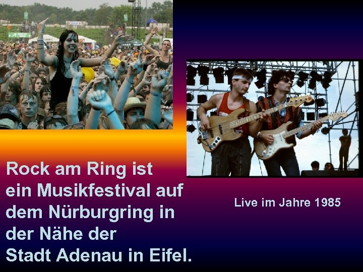 Rock am Ring ist ein Musikfestival auf dem Nürburgring in der Nähe der Stadt Adenau in Eifel. Live im Jahre 1985