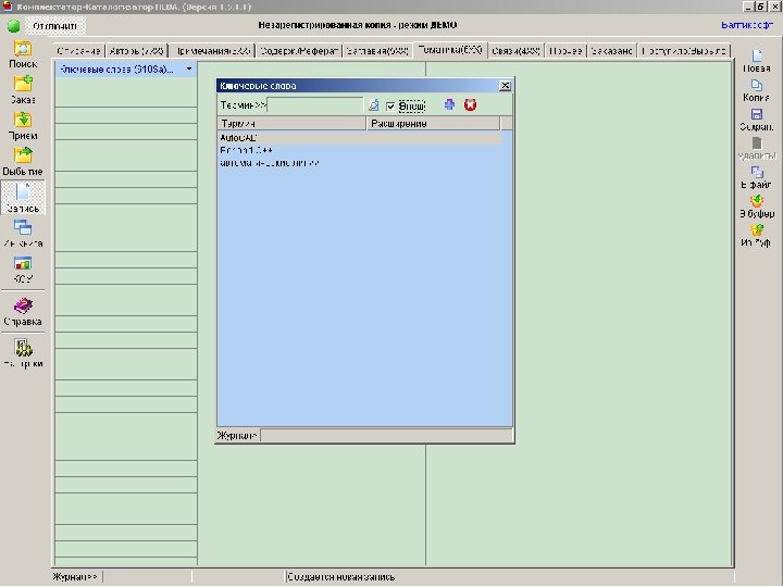 Подходы к построению инструментария для заимствования Простой, интуитивно понятный интерфейс пользователя Þ реализация внутри самой АБИС Минимизация дополнительных операций в процессе заимствования Þ совмещение запросов к внешним источникам для заимствования и локальным каталогам для проверки на дублет Þ прозрачное для пользователя преобразование заимствованных записей во внутренний формат и кодировку без промежуточного сохранения в файл и конвертирования