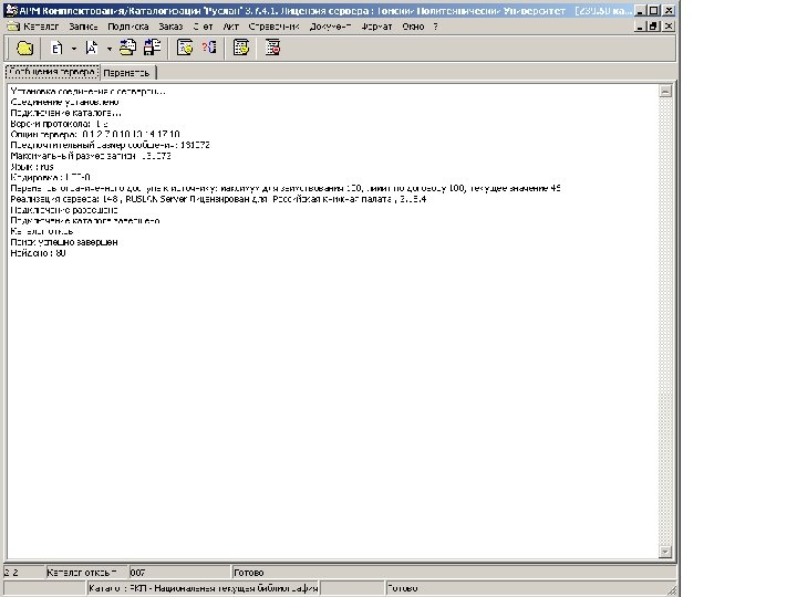 Использование стандартного протокола Z 39. 50 делает возможным работу сервиса не только с системами «Руслан» и «Нева» , но и с системами других производителей: VTLS, Ирбис 32/64 (с версии 2006. 2), «МАРК-SQL» (с версии 1. 9).