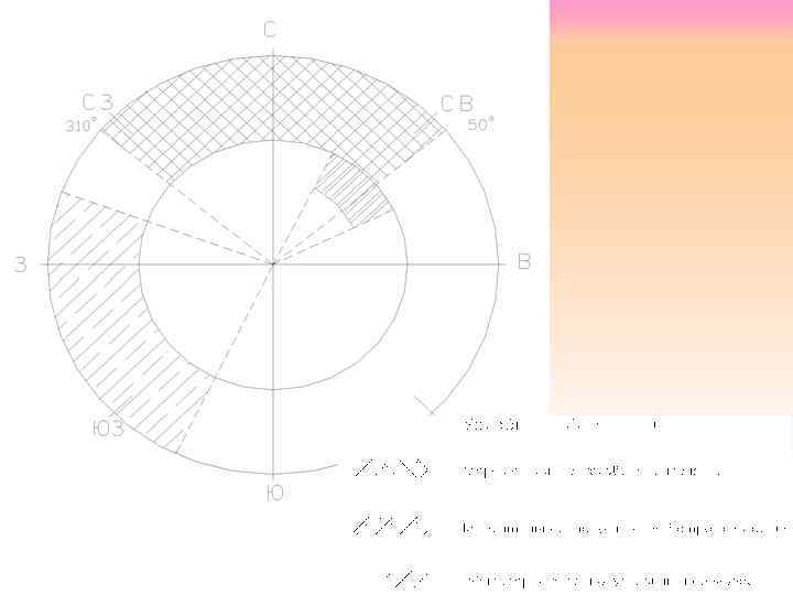 Для комплексной оценки делается построение круговой диаграммы, на которой в виде секторов отмечаются зоны по ориентации: запрещенные, нежелательные (ориентация дается в виде исключения с активной защитой от неблагоприятных факторов климата) неблагоприятные (ориентация возможна с защитой, смягчающей неблагоприятное воздействие климата) и благоприятные.