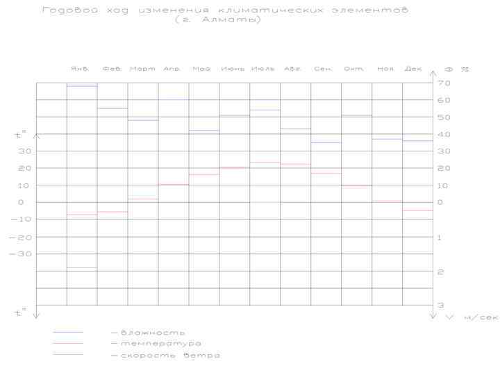1. Годовой ход изменения климатических элементов При изучении хода климатических элементов графическое изображение критических зон помогает выявить важнейшие характеристики климата данной местности. Для построения графика можно использовать бланксетку, образец которой показан на рисунке 2.