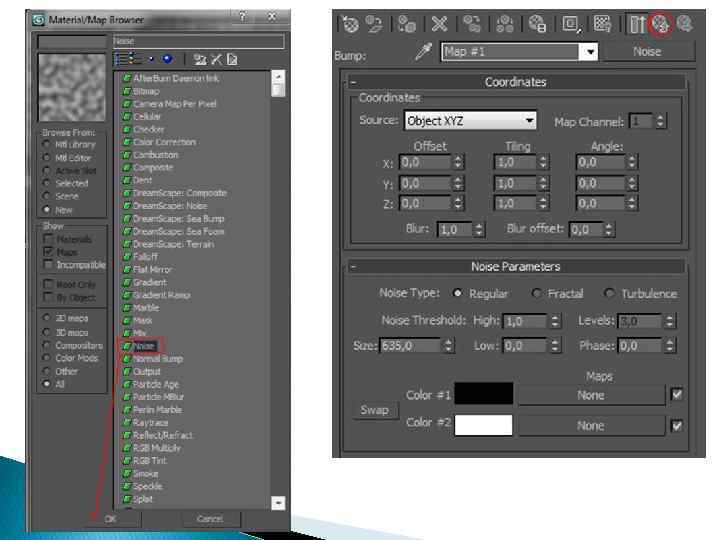 Апельсин: все оставляем стандартно меняем только цвет на апельсиновооранжевый В свитке Maps: в канал Bump — Cellular