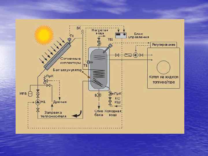 Гелиоустановки - устройства, в которых Гелиоустановки - солнечная (световая) энергия преобразуется в тепловую энергию инфракрасного излучения. В гелиоприемнике или солнечном коллекторе энергия Солнца трансформируется в тепловую энергию с последующей передачей теплоты рабочему телу – воде или воздуху.