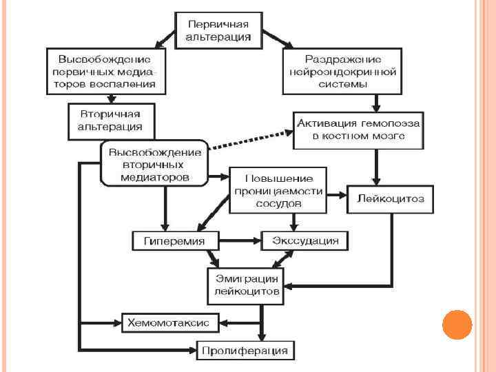 ОПРЕДЕЛЕНИЕ Воспаление (inflammatio, от лат. in-flammare - воспламенять) сформировавшаяся в процессе эволюции реакция организма на местное повреждение, характеризующаяся явлениями альтерации, расстройств микроциркуляции (с экссудацией и эмиграцией) и пролиферации, направленными на локализацию, уничтожение и удаление повреждающего агента, а также на восстановление (или замещение) поврежденных им тканей.
