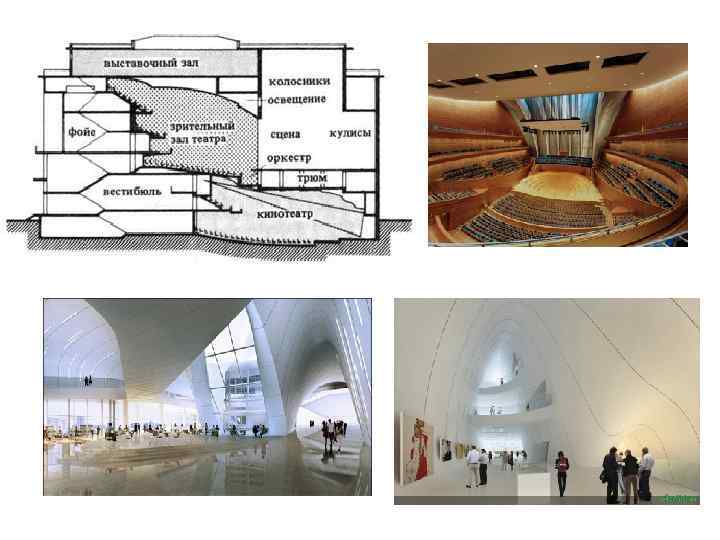 Рис. 2. Проект центра исполнительских искусств в Абу-Даби, 2007 г. Арх. Заха Хадид. Рис. 4. Collaborator - Gisela Stromeyer, Nhunder House Offeces, New York Citi, USA.