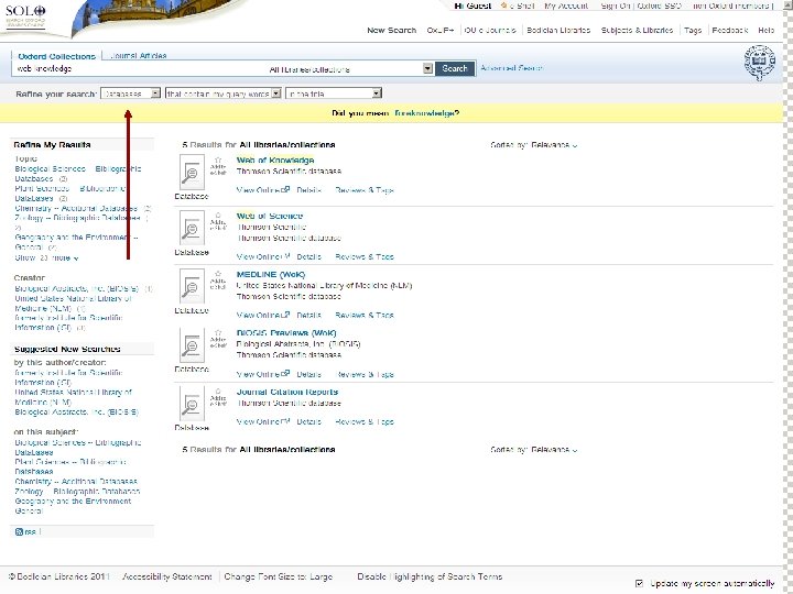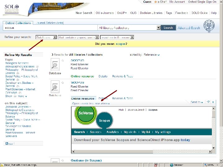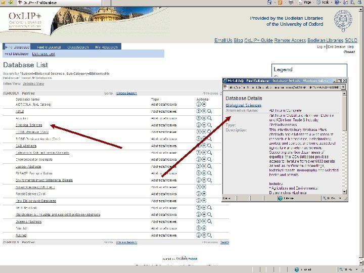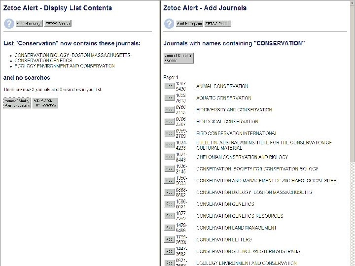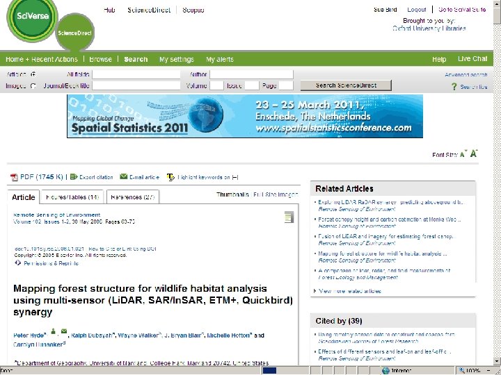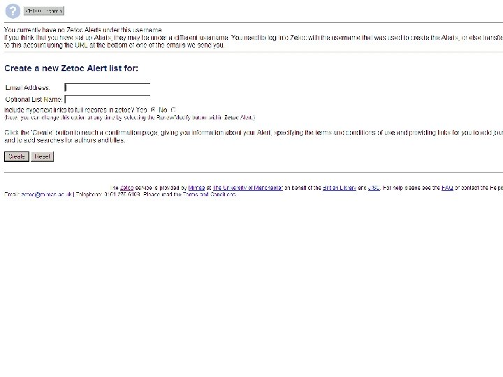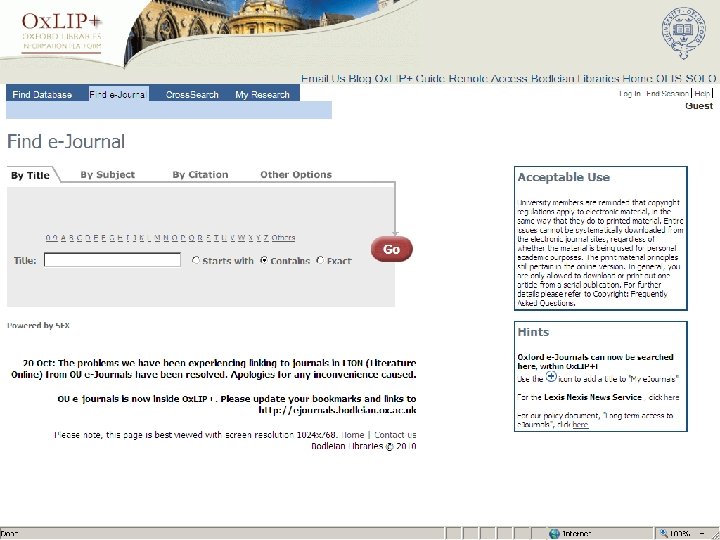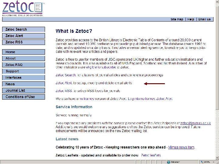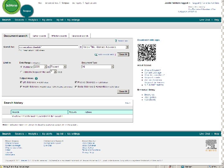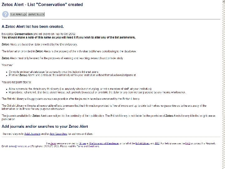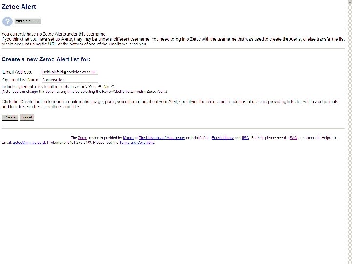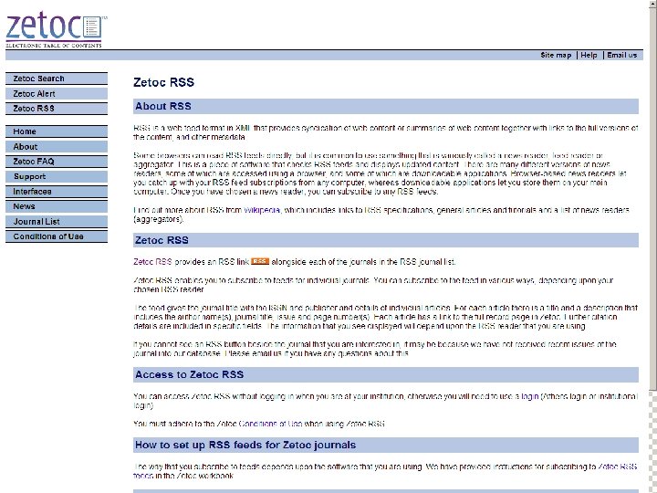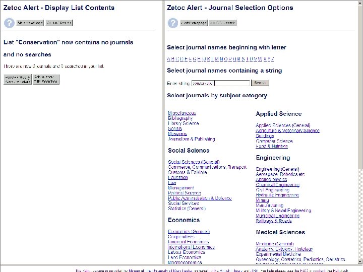 Sf. X: Oxford University e-Journals – full text ZETOC : Electronic table of contents: Covers the British Library’s Document Supply Centre’s intake of journals SCOPUS Science Direct. Updating service for journals mainly from Elsevier Web of Knowledge: Covers all the ISI Citation databases, Arts & Humanities, Social Science & Science