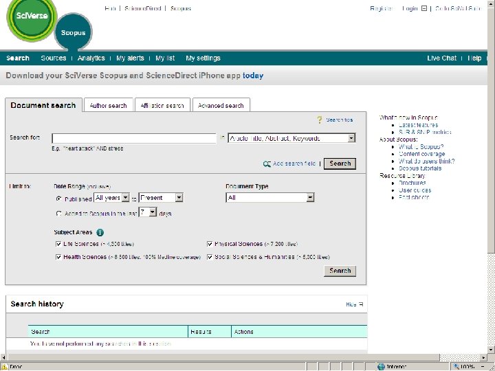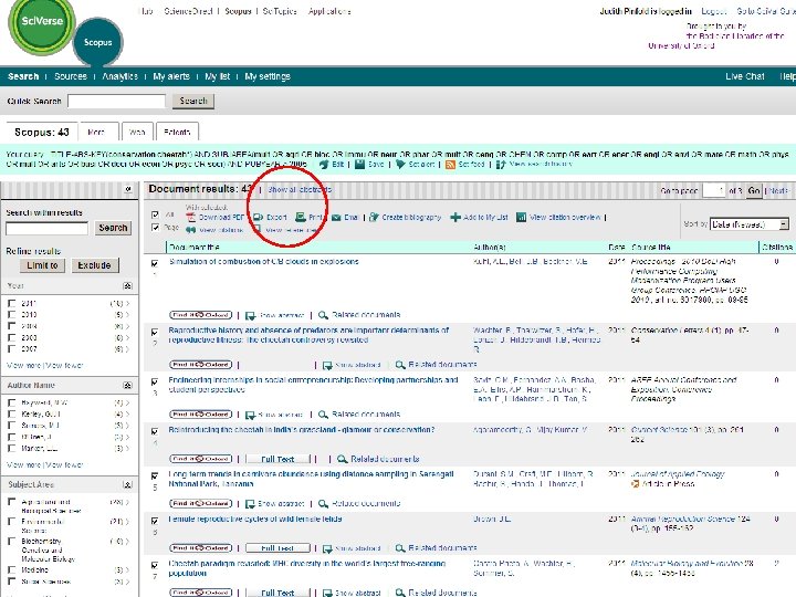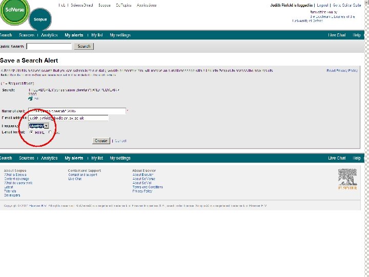 Keeping up to date with SCOPUS Covers journals loaded onto Science. Direct (but not exclusively) Includes Abstracts in the searches as well as journal titles, keywords and citations Can look at the results over the net Journal and Citation alerts are emailed