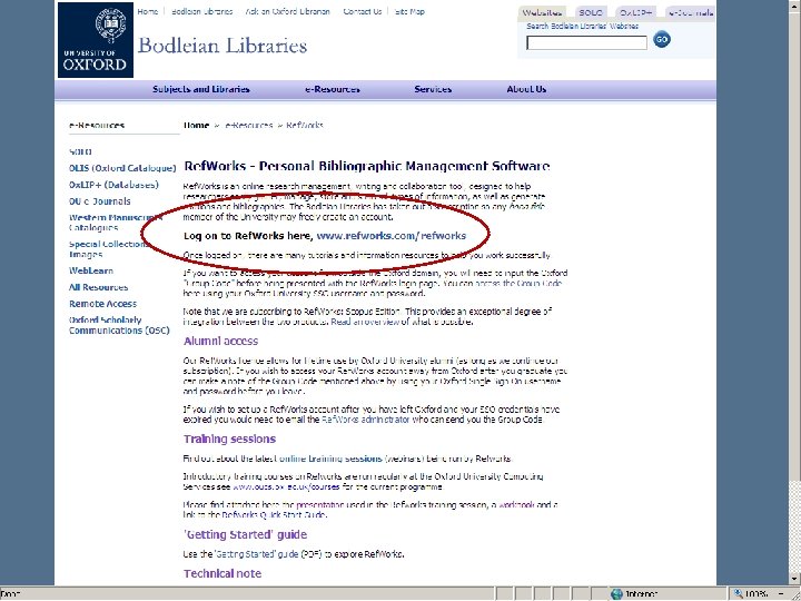 End. Note system: Software package that you purchase from OUCS but you then have it permanently There is also now a Web version Courses laid on for both main systems (http: //www. oucs. ox. ac. uk)
