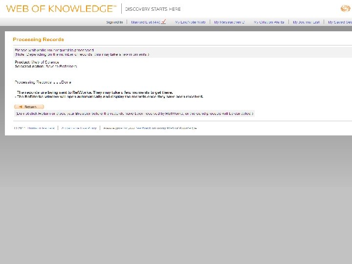 Web of Knowledge WEB of Science: ISI citation indexes Broad Coverage – all subject areas Run when convenient Automatic export to End. Note but now with export to Ref. Works (Journal Citation Reports – help choose the most effective title in your area)