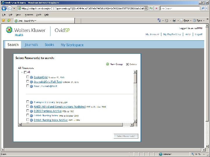 Databases vs. Search engines • Contents are • indexed by subject specialists • Subject headings • Limiting functions • e. g. publication types, language Allow you to • View Search history • Combine searches • Mark and sort results • • Print/save/email/ex port • • Save searches • Set up alerts Searches done by automated “web crawlers” No thesaurus / subject headings – just free text searching No limiting functions Usually none of these!