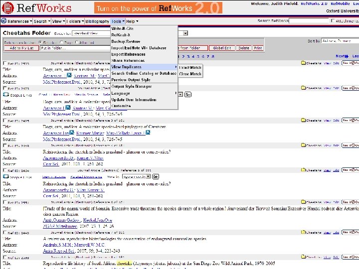 Reference Management Systems • Pro. Cite, Reference Manager and End. Note (works without web access – but software needs to be installed on own machine – charge of c£ 90 from OUCS) • Ref. Works (web based – access your records anywhere - free to members of university) • End. Note on the Web (free to members of university, but has limited feature set – designed to be used alongside desktop version) • Zotero is a free plug-in for Firefox browser (only) – limited but growing capability