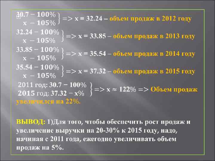 Проблематика Падение продаж, ежегодное снижение выручки на 4 -5% Цели Рост продаж и увеличение выручки на 20 -30% в год до 2015 года