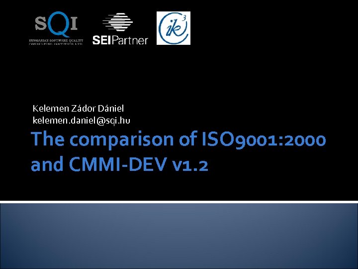 Kelemen Zádor Dániel kelemen. daniel@sqi. hu The comparison of ISO 9001: 2000 and CMMI-DEV v 1. 2