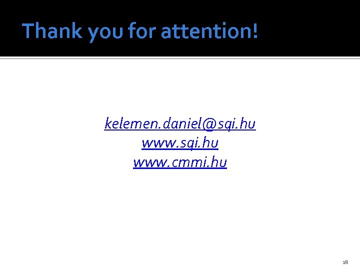 Thank you for attention! kelemen. daniel@sqi. hu www. cmmi. hu 18
