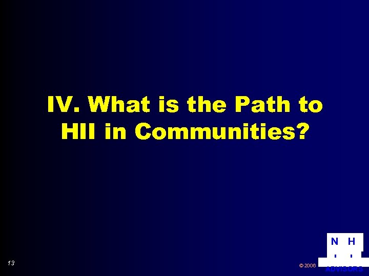 IV. What is the Path to HII in Communities? N H 13 © 2006 I I ADVISORS