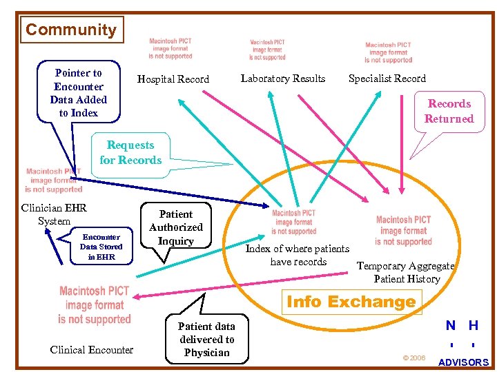 e. HT Model Meets Requirements 1. 2. 3. 4. 5. 6. 7. Financial incentives to create good business case for outpatient EHRs Central repository for storage Patients must request their own information Solution must appeal to consumers so they will pay Patients must control all access to their information Governing institution must be self-regulating community-owned non-profit Technical architecture must prevent information loss and misuse N H 33 © 2006 I I ADVISORS