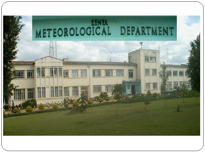 … cont’d ØRelocate KMD Hqs and TX station to the new site at Ngong to create space for expansion of WMO-RTC. ØUpgrade the WMO Regional Training Centre (RTC)-Nairobi ØEstablish a Regional Meteorological Research Centre (RMRC)
