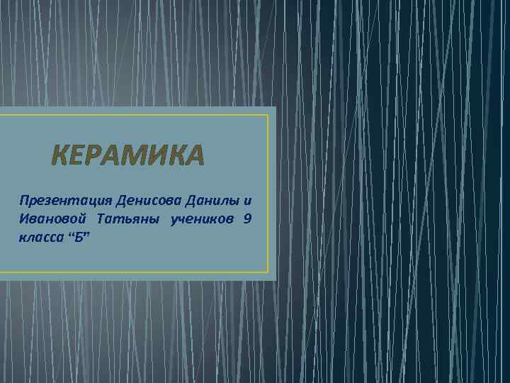 КЕРАМИКА Презентация Денисова Данилы и Ивановой Татьяны учеников 9 класса “Б”