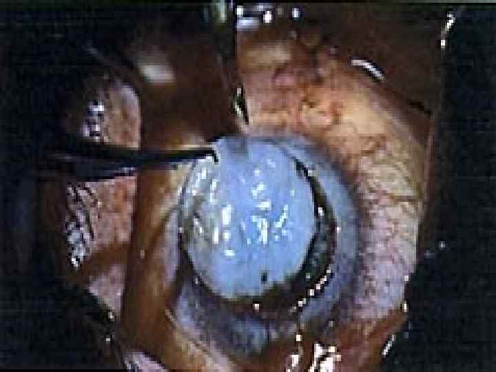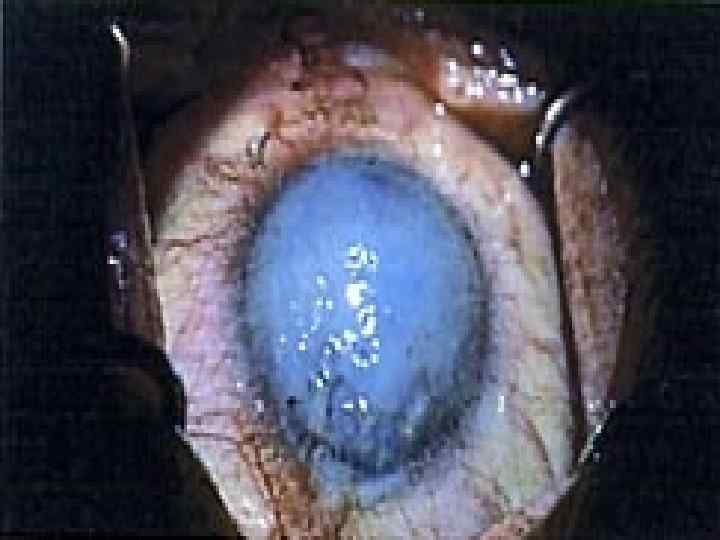 Глаз после сквозной кератопластики. Зрачок расширен.