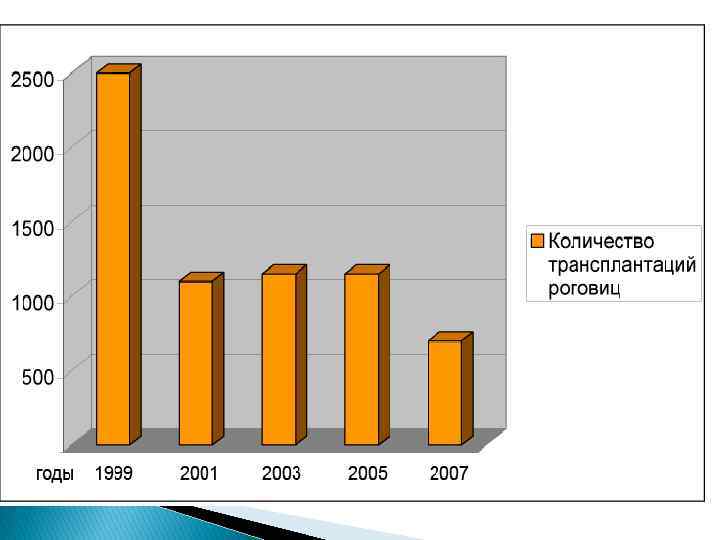 Актуальность проблемы В РФ – более 500 тысяч слабовидящих и слепых (Либман Е. С. , Шахова Е. В. , 2005 г. ) - из них 18% - пациенты с патологией роговицы - большая половина лиц нуждается в трансплантации роговицы - на территории РФ ежегодно выполняется около 1500 кератопластик, а реальная потребность в системе ФГУ «МНТК «Микрохирургия глаза» С. Н. Федорова» около 15000 операций в год.