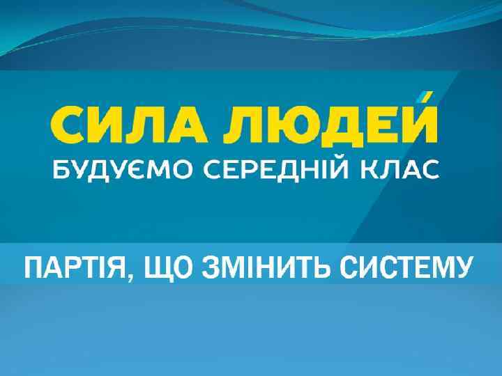 Ідеологія В центрі ідеології «Сили Людей» стоїть ЛЮДИНА. Людина освічена, розвинена, вільна та відповідальна, що живе у достатку, є найвищою цінністю для політичної партії «Сила Людей» та основною метою України: розвинутої країни з громадянським суспільством та високим рівнем культури та духовності; сильної країни з міцною економікою, де впроваджуються інновації; справедливої країни, в якій влада для людей, а не люди для влади; самоврядної країни, в якій люди об'єднані в сильні громади на місцях і самостійно вирішують, як їм жити.