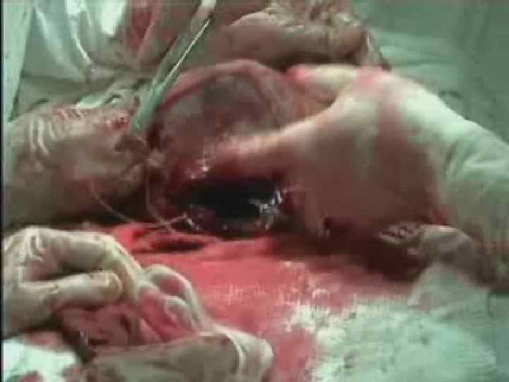 n при поперечном разрезе на матке целесообразно использовать «треугольный» разрез, когда его форма напоминает тупой угол; Р. S. Если есть возможность, плод извлекается в оболочках.