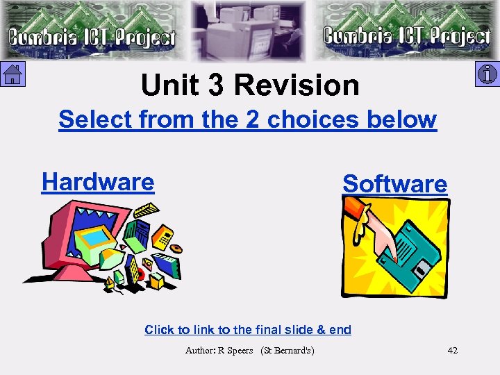 Unit 3 Revision Select from the 2 choices below Hardware Software Click to link to the final slide & end Author: R Speers (St Bernard's) 42