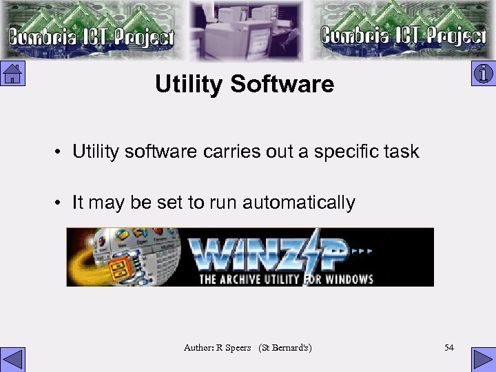 Utility Software • Utility software carries out a specific task • It may be set to run automatically Author: R Speers (St Bernard's) 54