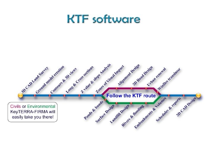 Key. TERRA-FIRMA Working inside Brics. CAD & Auto. CAD 2007 to 2014 platforms. Highly suitable for a broad range of Civil, Environmental, Landscape and Land Survey projects. Unsolicited endorsement from Seer Projects Ltd. in Windsor “I like KTF …. . … I can’t remember how long we have used it for now but I am sure our first version was 4. 0 - I have used it continuously. ”