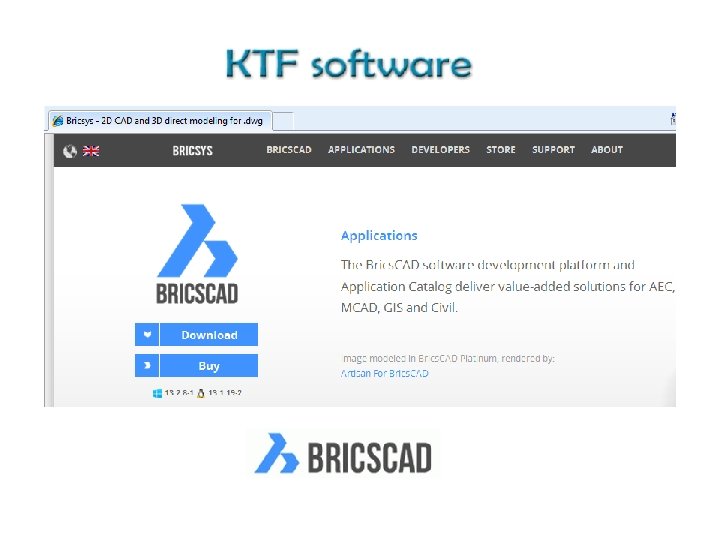 Six reasons to purchase Brics. CAD : 1. Full function 2 D/3 D dwg based CAD with a familiar interface. 2. Advanced 2 D tools and 3 D modelling. 3. Rapid transition for users who know Auto. CAD®. 4. Large and growing suite of third party solutions. 5. Industry leading support and compelling price. 6. Very easy and quick to download and install. Most new Brics. CAD users have started by downloading a copy for a free 30 day evaluation from www. bricsys. com. Brics. CAD is developed by Bricsys NV in Belgium and we represent them in the UK.