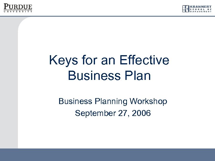Keys for an Effective Business Planning Workshop September 27, 2006