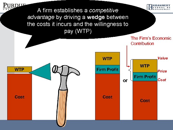 A firm establishes a competitive advantage by driving a wedge between the costs it incurs and the willingness to pay (WTP) The Firm’s Economic Contribution Value WTP WTP Firm Profit Price or Cost Firm Profit Cost