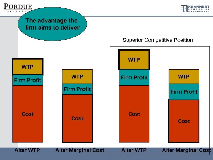 The advantage the firm aims to deliver Superior Competitive Position WTP Firm Profit Cost Alter WTP Cost Alter Marginal Cost WTP Firm Profit Cost Alter WTP Alter Marginal Cost