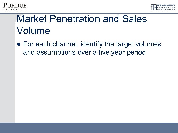 Market Penetration and Sales Volume l For each channel, identify the target volumes and assumptions over a five year period