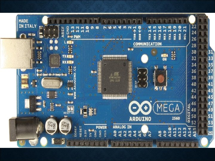 КРАТКИЕ ХАРАКТЕРИСТИКИ • Микроконтроллер ATmega 2560 • Рабочее напряжение 5 В • Входное напряжение (рекомендуемое) 7 -12 В • Входное напряжение (предельное) • Цифровые Входы/Выходы • Аналоговые входы 6 -20 В 54 16 • Постоянный ток через вход/выход 40 m. A • Постоянный ток для вывода 3. 3 В 50 m. A • Флеш-память 256 KB (из которых 8 КB используются для загрузчика) • ОЗУ 8 KB • Энергонезависимая память • Тактовая частота 16 MHz 4 KB