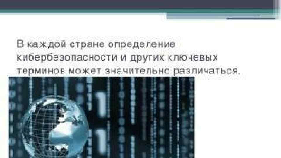 • В каждой стране определение кибербезопасности и других ключевых терминов может значительно различаться.