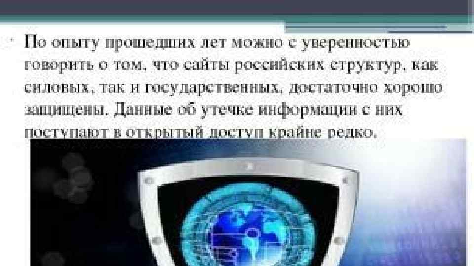 • По опыту прошедших лет можно с уверенностью говорить о том, что сайты российских структур, как силовых, так и государственных, достаточно хорошо защищены. Данные об утечке информации с них поступают в открытый доступ крайне редко.