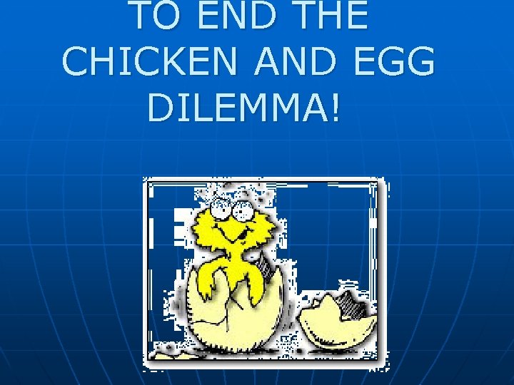 TO END THE CHICKEN AND EGG DILEMMA!