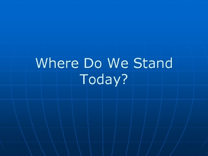 Where Do We Stand Today?