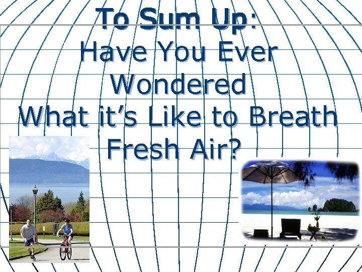 To Sum Up: Have You Ever Wondered What it’s Like to Breath Fresh Air?