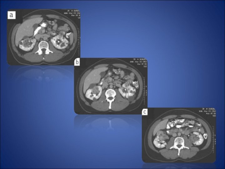 Diagnosis • • • CT scan Ultrasonography MRI Renal arteriography Percutaneous cyst puncture