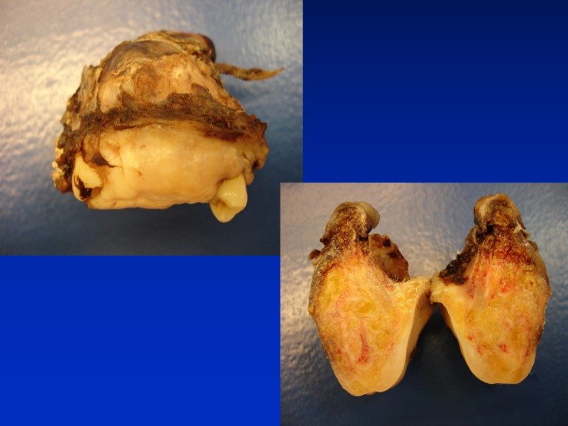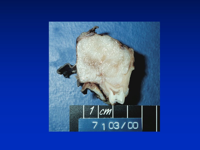 Odontogenes Klarzellkarzinom maligner Tumor Zahnleiste, Malassez- Epithelnester 20 - 70 unscharf abgrenzbare Osteolyse im OK oder UK solide Verbände aus Zellen mit hellem, vacuoligem Zytoplasma (Glykogengranula)