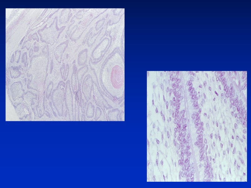 Squamöser odontogener Tumor benigner Tumor mit manchmal aggressivem Wachstum Zahnleiste, Malassez- Epithelreste 20- 70 unilokuläre Osteolyse, OK und UK Plattenepithelformationen in fibrösem Stroma