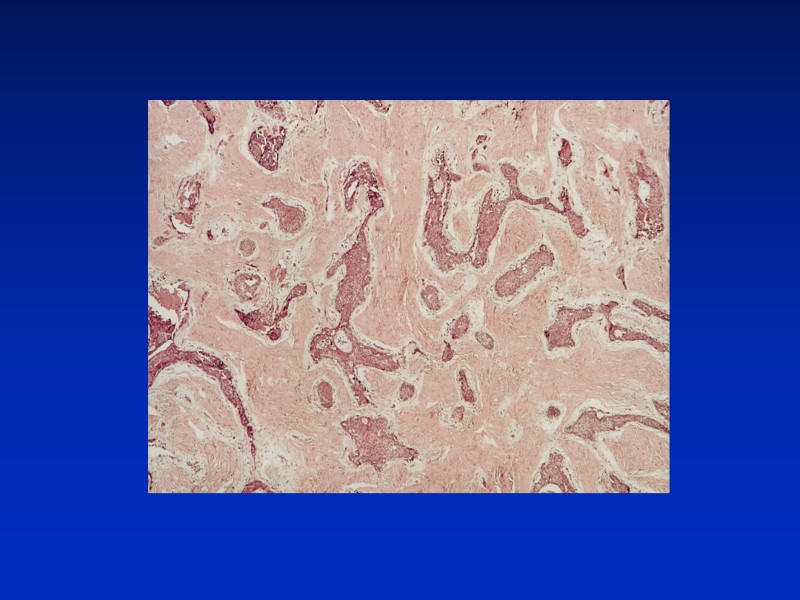 Ameloblastisches Fibrom benigner Tumor mit induktivem Effekt auf das Ectomesenchym selten nach dem 21 Lj. scharf abgrenzbare Osteolyse des UK, Prämolarregion kleine Verbände von epithelialen Zellen mit zellreichem Stroma nahezu ohne Kollagen