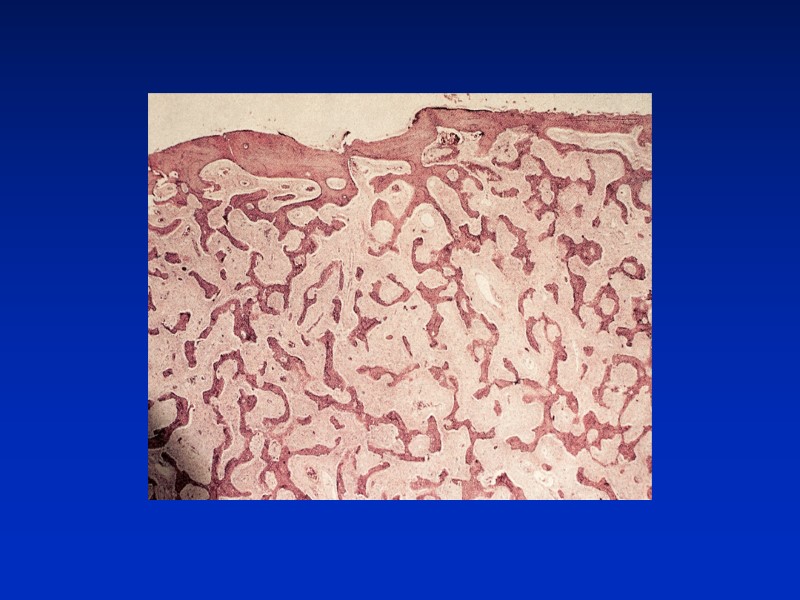 Aneurysmatische Knochenzyste Ät: nicht geklärt Lok: UK Alter: 20 - 30 Rö: multilokuläre Osteolyse mit Auftreibung des Knochens Histo: septierte Zyste aufgebaut aus Bindegewebslamellen mit Hämosiderin, Riesenzellen, Osteoid