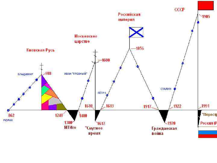 Билет № 1 Вопрос № 2 Семь названий нашего государства 1. Киевская Русь (862 -1237) 2. Московское царство (1480 -1610) 3. Российская империя (1613 -1917) 4. Россия (февраль 1917 -октябрь 1917) 5. РСФСР (1917 -1922) (Российская советская социалистическая республика) 6. СССР (1922 -1991) 7. Россия (РФ) (1991 -…? )