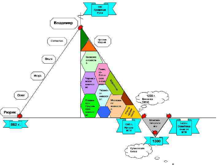 • • Зачёт № 2 Киевская Русь 1. 5 названий нашего государства? 2. Восточные славяне. Где и как жили до 9 века? 3. Как образовалось государство у восточных славян? 4. Первые русские князья. Рассказать о них. 5. История принятия христианства на Руси? 6. Причина ослабления Киевской Руси? Назвать русские княжества. 7. История образования Золотой орды. Когда и где произошло первое столкновение русских с монголо -татарами? 8. Что такое монголо-татарское иго, каким оно было на Руси и сколько длилось? 9. Под чьё влияние попали земли Киевской Руси, и как это в дальнейшем сказалось на истории восточных славян? 10. Куликовская битва.