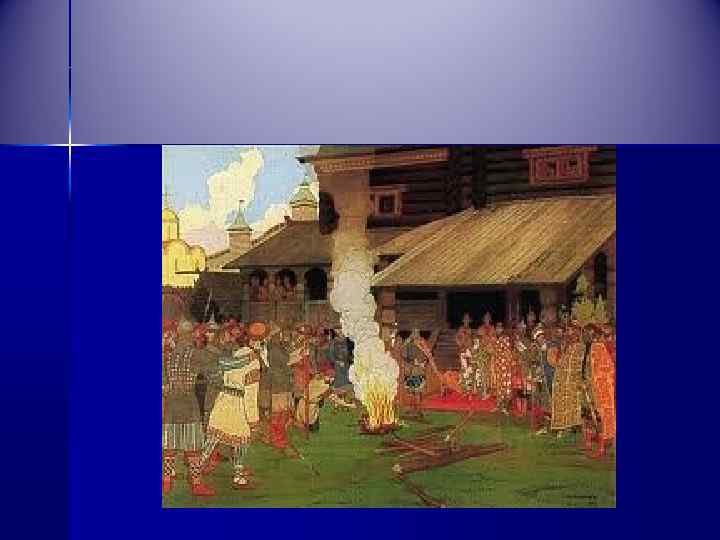 Правление Ольги n n n Жестоко отомстила за смерть мужа Первая христианка на Руси Упорядочила сбор дани – ввела уроки – размер дани и погосты – места сбора дани (Сбор дани князем назывался полюдье)