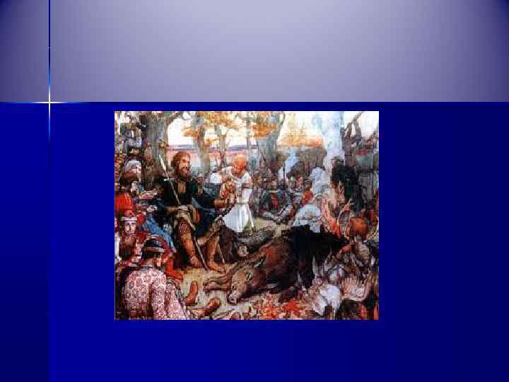 Правление Святослава n n n Присоединил земли вятичей Нанес поражение Волжской Булгарии Покорил мордовские племена Разгромил хазар Отразил натиск печенегов Боролся с Византией за Балканы, но неудачно
