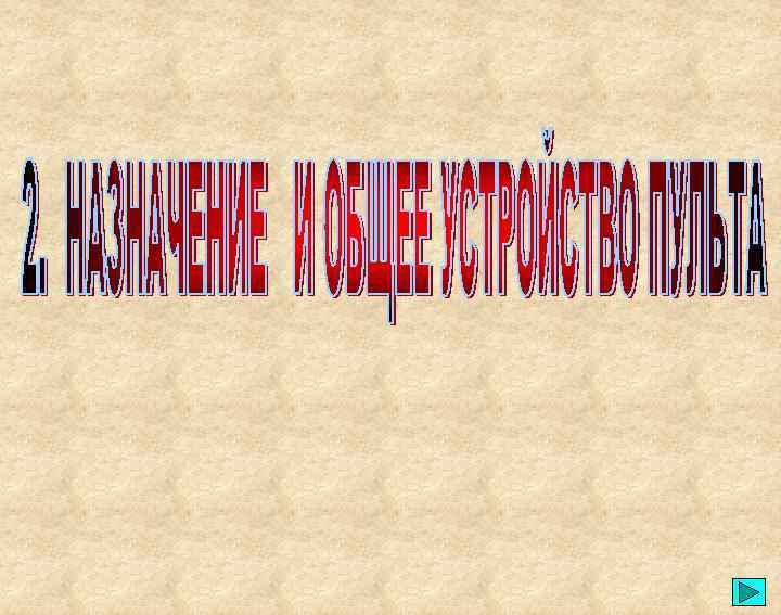 ПУЛЬТ ОПЕРАТОРА ПРЕДНАЗНАЧЕН: - для управления работой электрическими приводами механизмов наведения рубки при полуавтоматическом режиме работы НАУ 9 С 451 М 1; - для управления работой системой автоматического перевода ПУ из походного положения в боевое положение и обратно; - для осуществления пуска ПТУР; - для формирования команд управления полётом ПТУР для НАУ 9 С 451 М 1 при пуске ПТУР в режиме ручной коррекции.